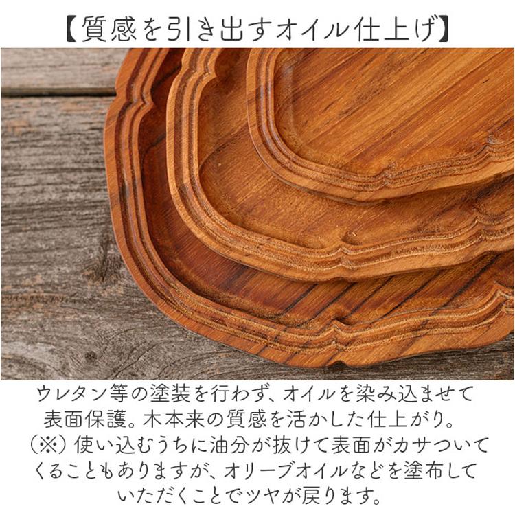 ・ナチュラルなチーク材を使用。繊細なリムのレリーフが美しい木目を際立たせ、グッとおしゃれに。