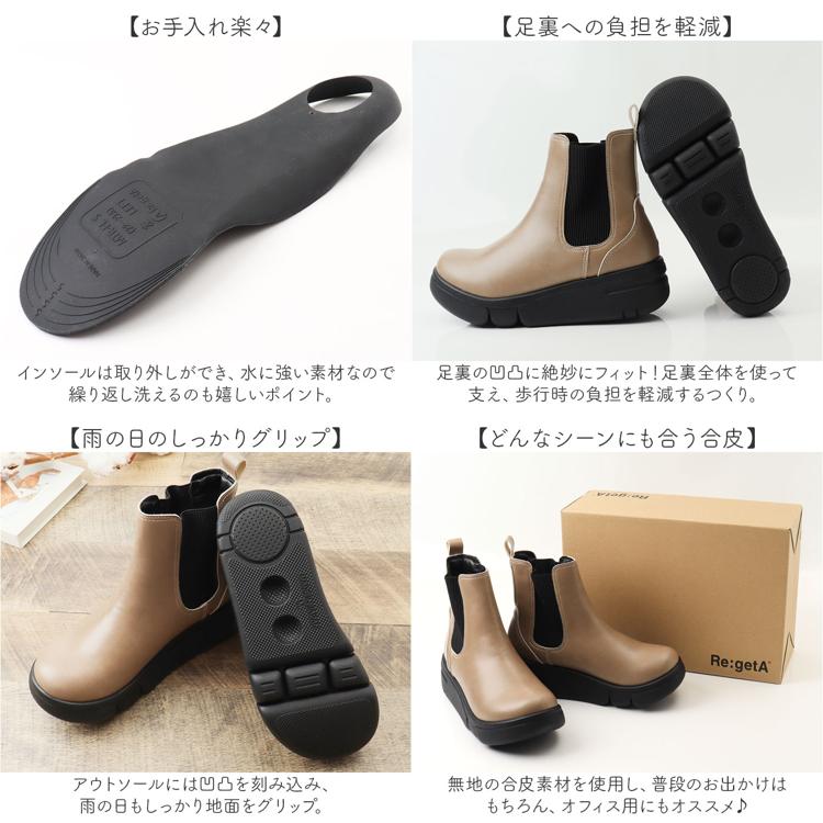 Re:getA リゲッタ ブーツ サイドゴア 厚底 RE163C 通販 厚底ブーツ サイドゴアブーツ レディースブーツ ショートブーツ ショート 軽い 軽量 疲れにくい 歩きやすい レディース 女性 カジュアル シンプル コンフォート