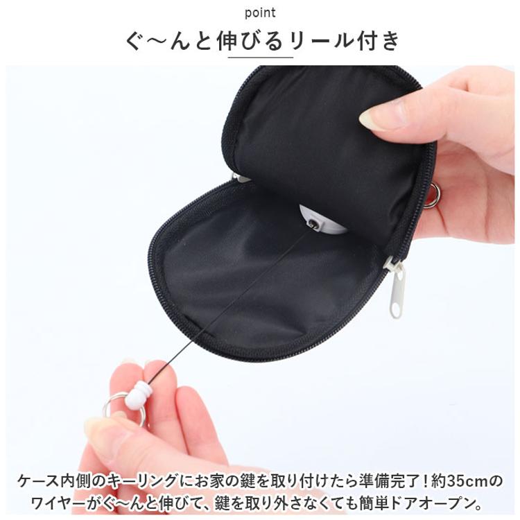 ・ケース内側のキーリングにお家の鍵を取り付けたら準備完了!約35cmのワイヤーがぐ~んと伸びて、鍵を取り外さなくても簡単ドアオープン。