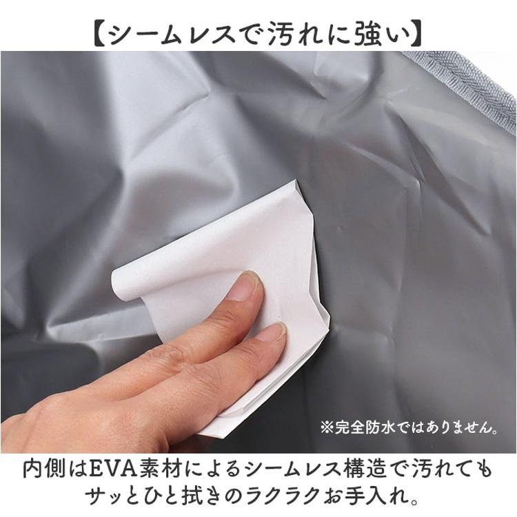 ・内側はEVA素材によるシームレス構造で汚れてもサッとひと拭きのラクラクお手入れ。※完全防水ではありません。