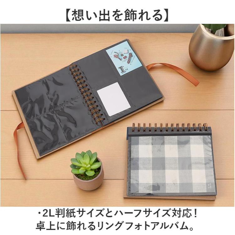 ・2L判紙サイズとハーフサイズ対応!卓上に飾れるリングフォトアルバム。