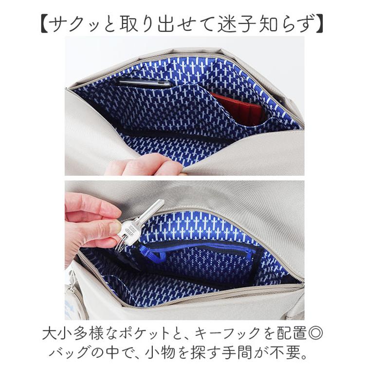 ・大小多様なポケットと、キーフックを配置◎バッグの中で、小物を探す手間が不要。