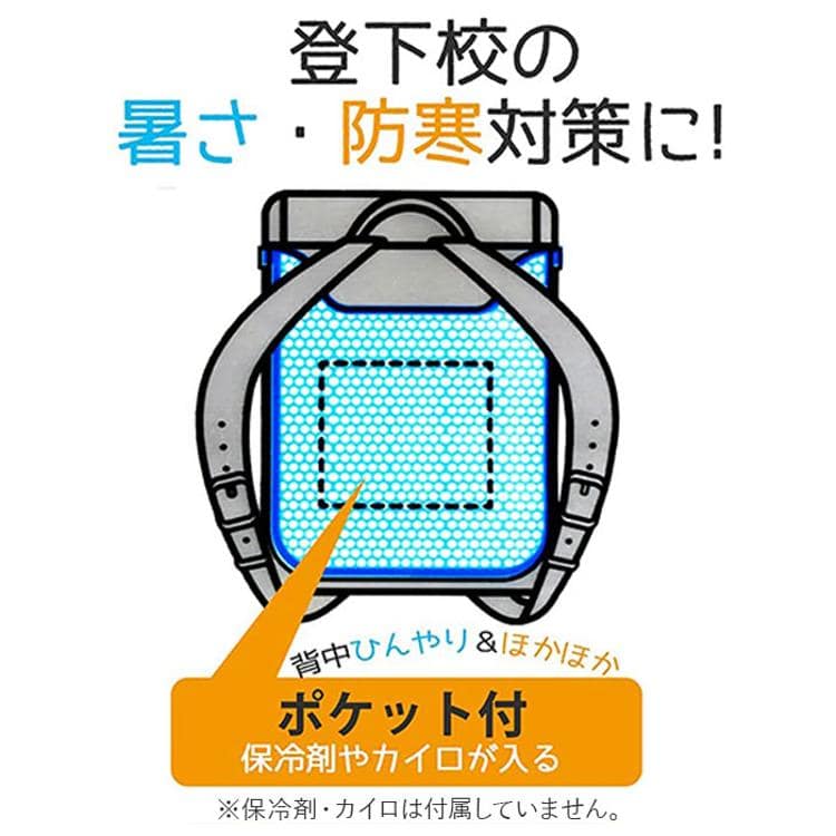 ・内側のポケットに、保冷剤やホッカイロを入れて快適通学!(※保冷剤・カイロは付属していません。)