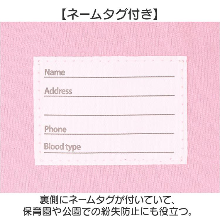 ・裏側にネームタグが付いていて、保育園や公園での紛失防止にも役立つ。