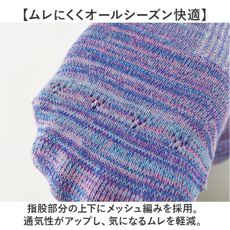 ・指股部分の上下にメッシュ編みを採用。通気性がアップし、気になるムレを軽減。