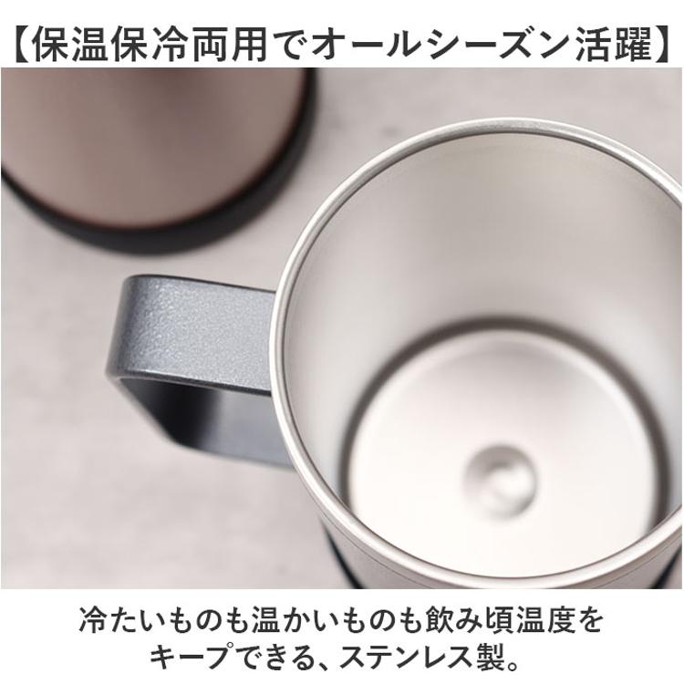 ・冷たいものも温かいものも飲み頃温度をキープできる、ステンレス製。