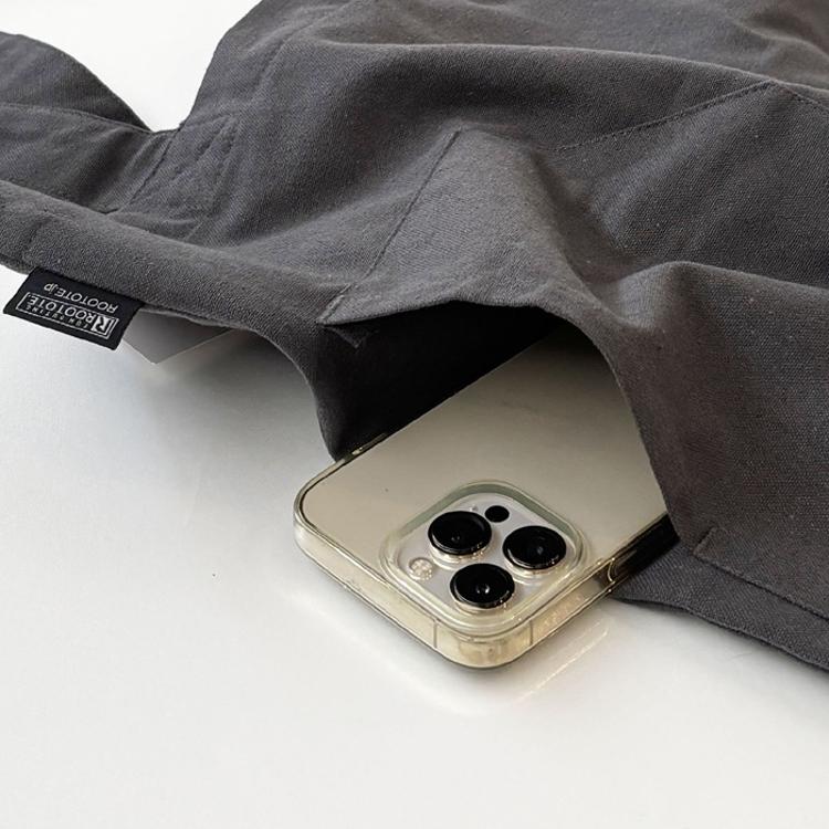 ・トートを肩にかけたままでも出し入れしやすいルーポケット。すぐに出したいスマホなどを収納しておけます。