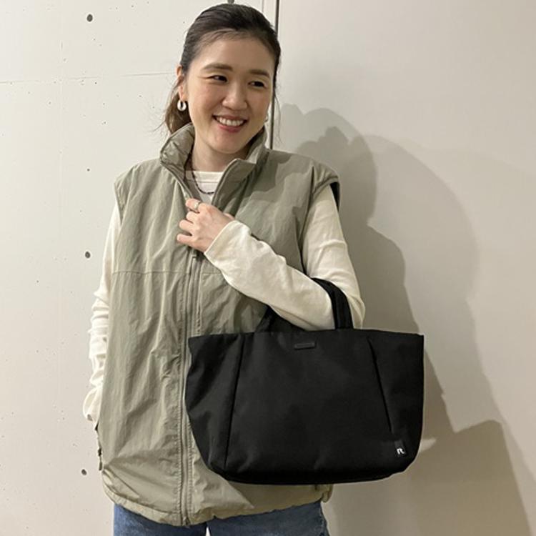 ・幅広マチで、B5ノート、ボトル、スマートフォン、折り畳み傘、