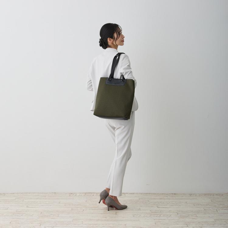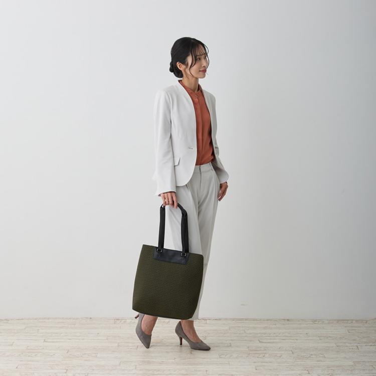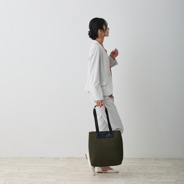 ・縦長シルエットのトートは電車などでの移動のときも邪魔にならない。