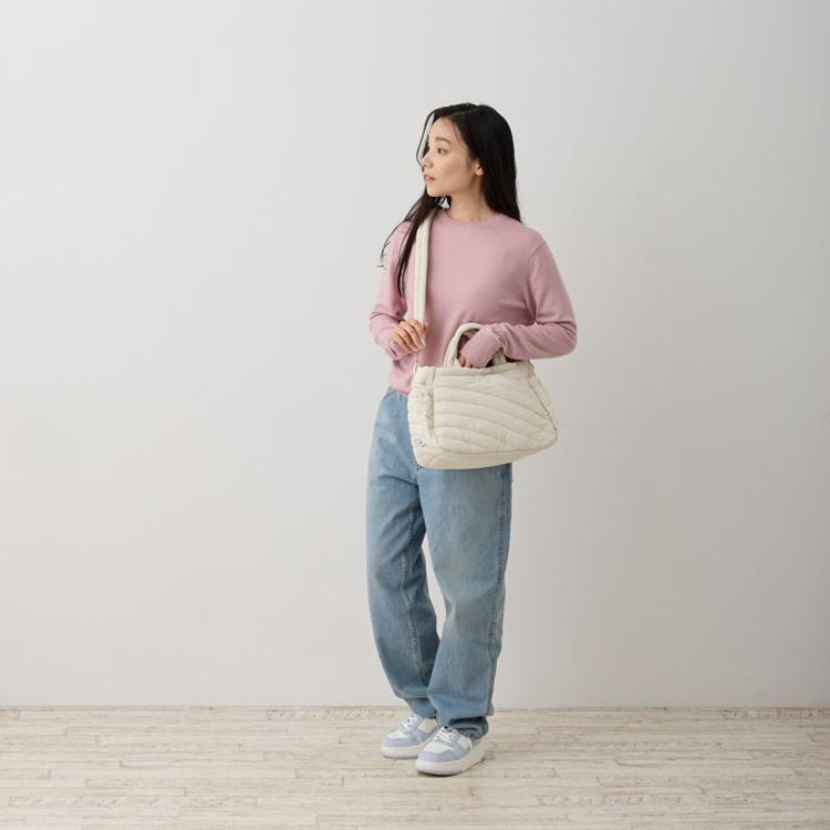 ・にぎりやすいハンドルとショルダー。ふっくらとしなやかなつくりで手や肩への負担が少なく、しっかりと荷物を支えます。
