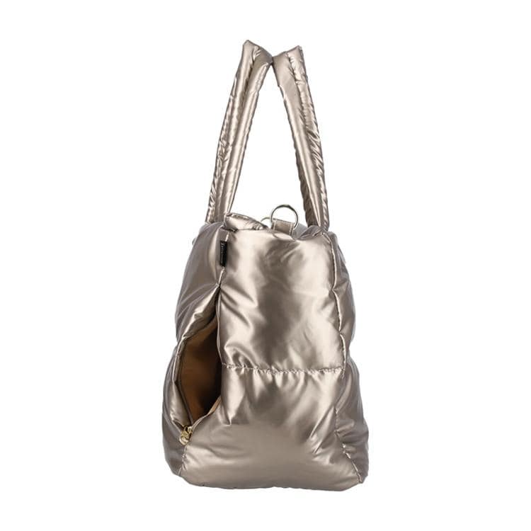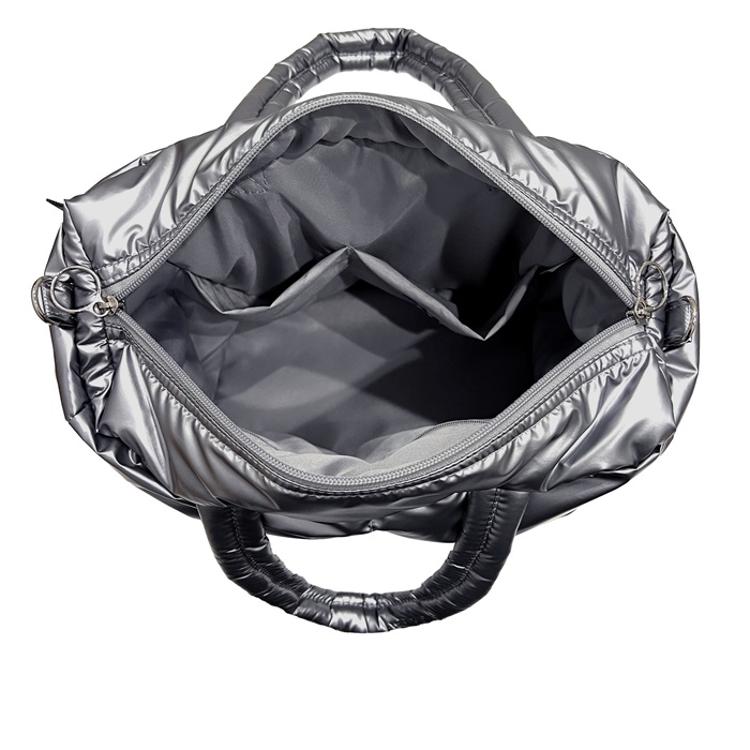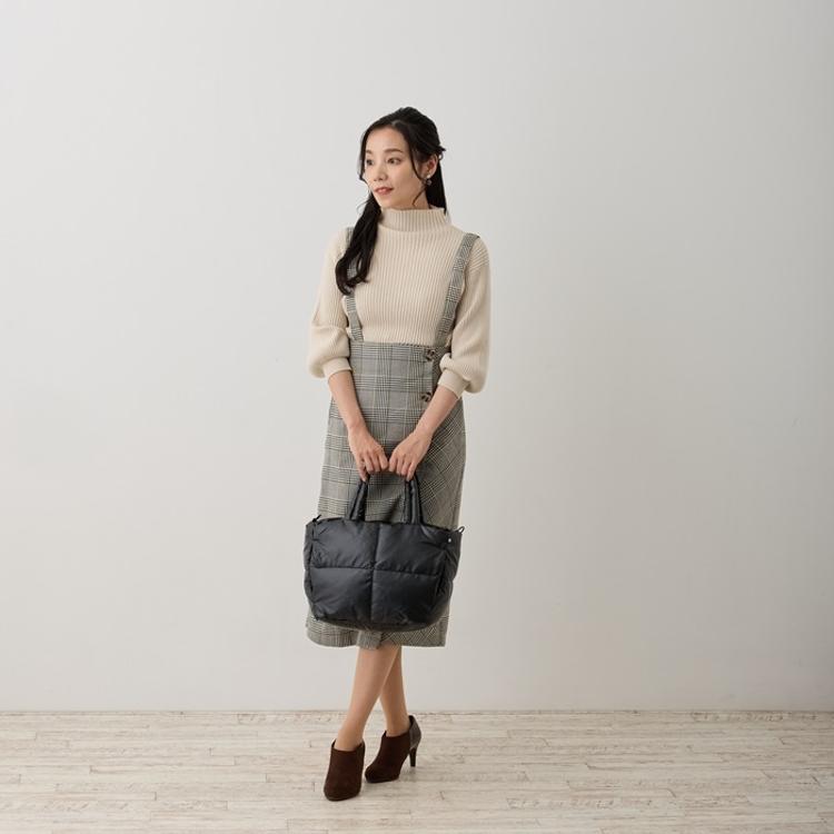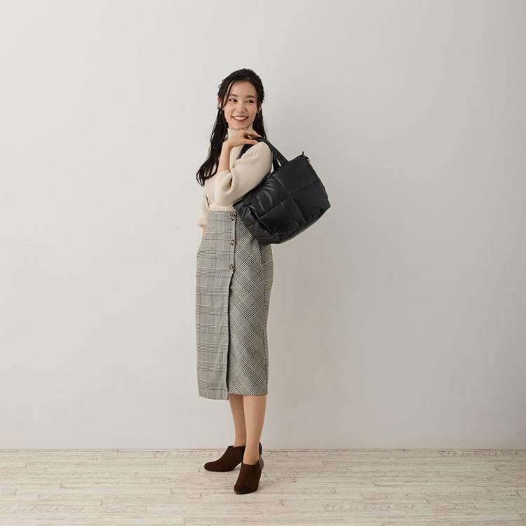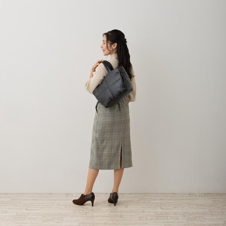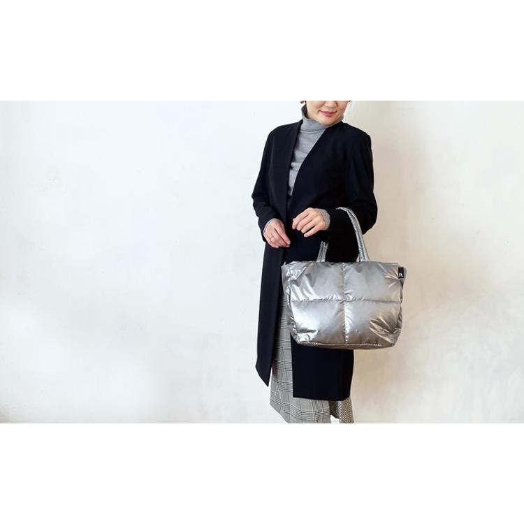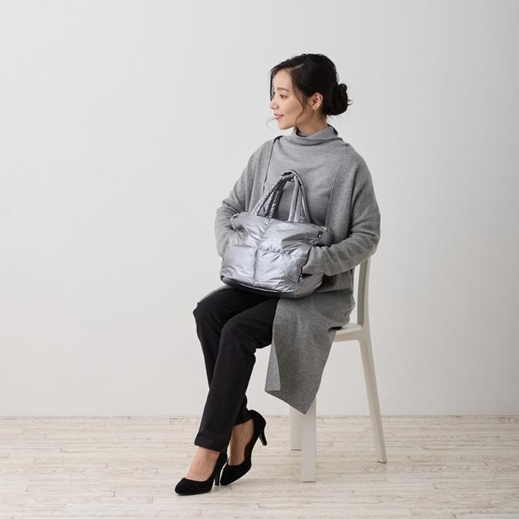 ・スタイリッシュなきれいめキルティング。羽毛のインナーで仕上げた軽~いトート。