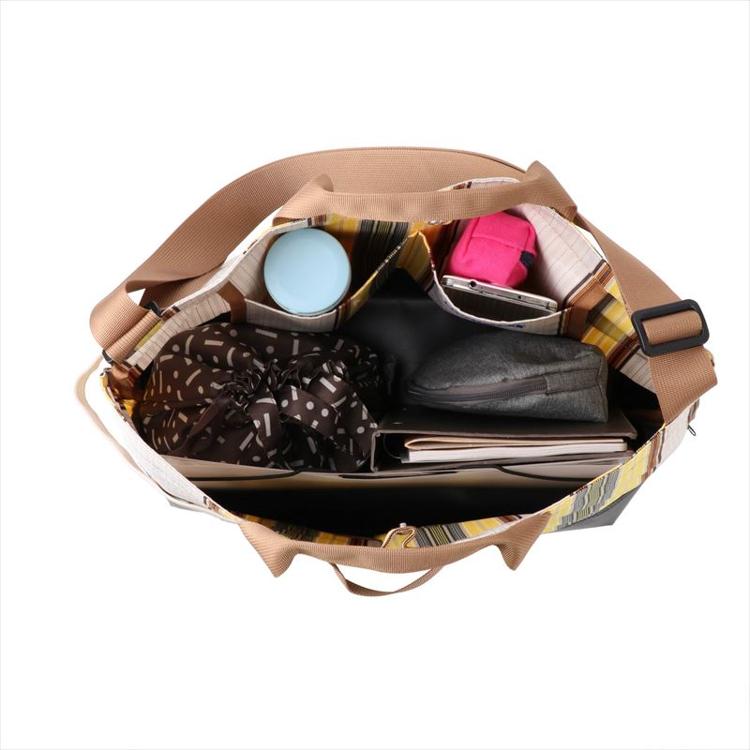 ・A4サイズの書類はもちろん、ランチボックス、ボトル、折りたたみ傘、コスメポーチなどもらくらく収納。