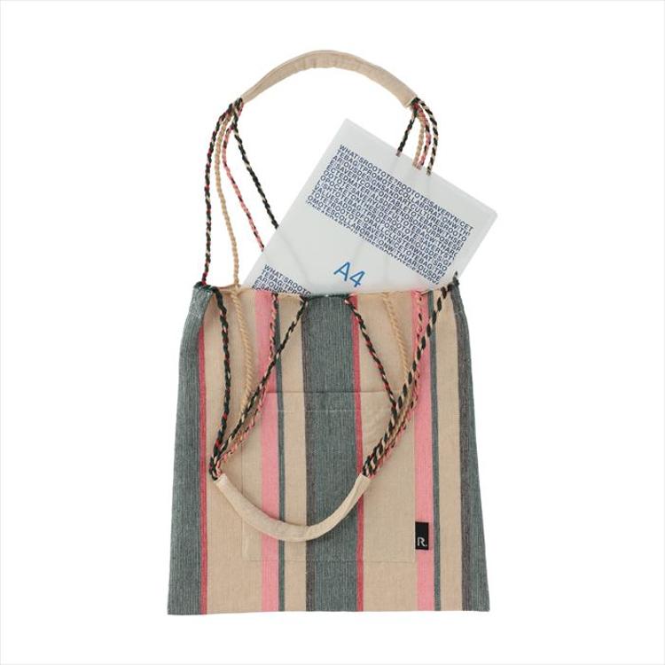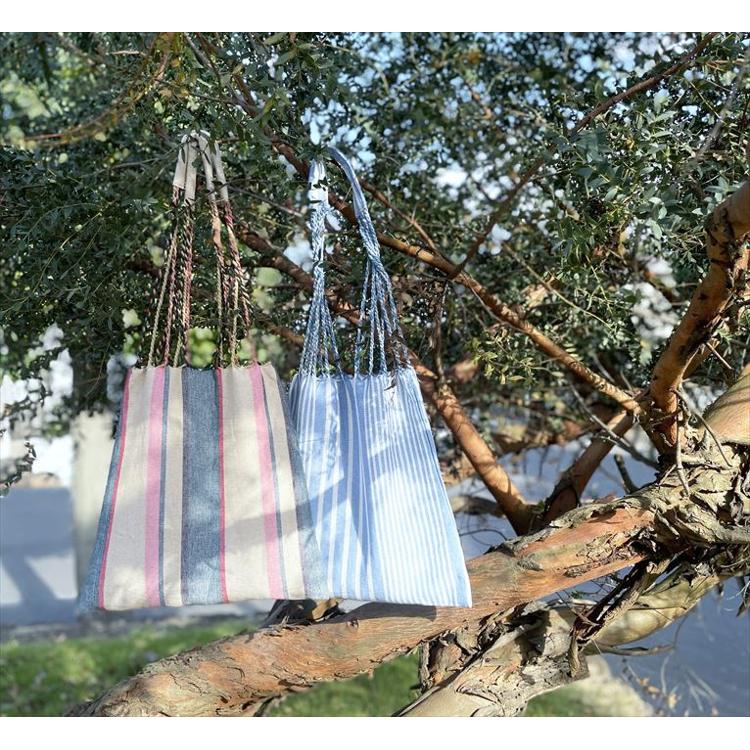 ・環境に優しいリサイクルコットン素材のエコトート。リサイクル後、新たな生地に生まれ変わり、その生地からトートバッグがつくられています。
