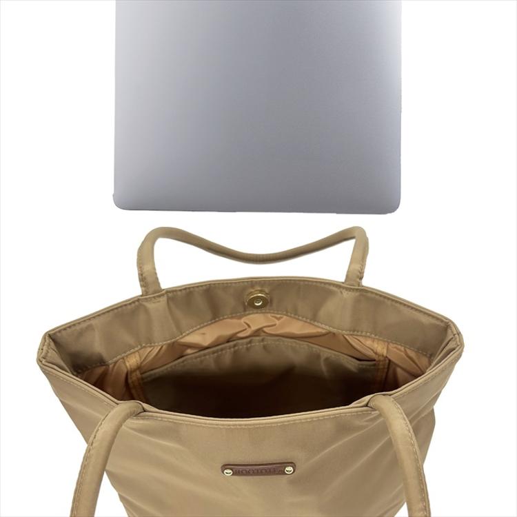13インチのノートPCもすんなり入るサイズ感で、ビジネスシーンからレッスンバッグとしてまで幅広く活躍します。