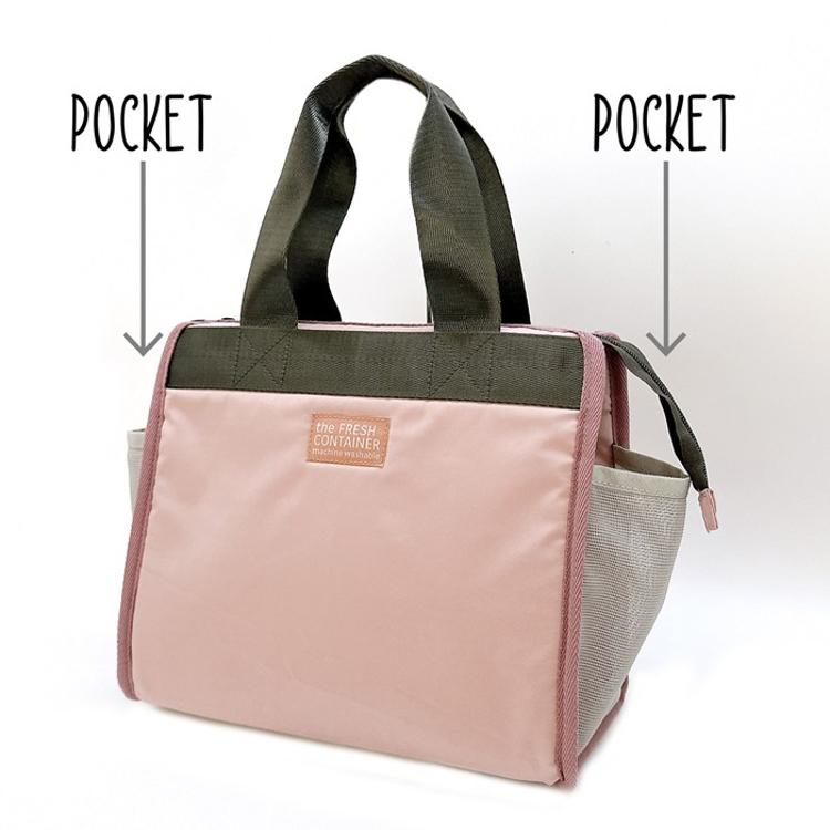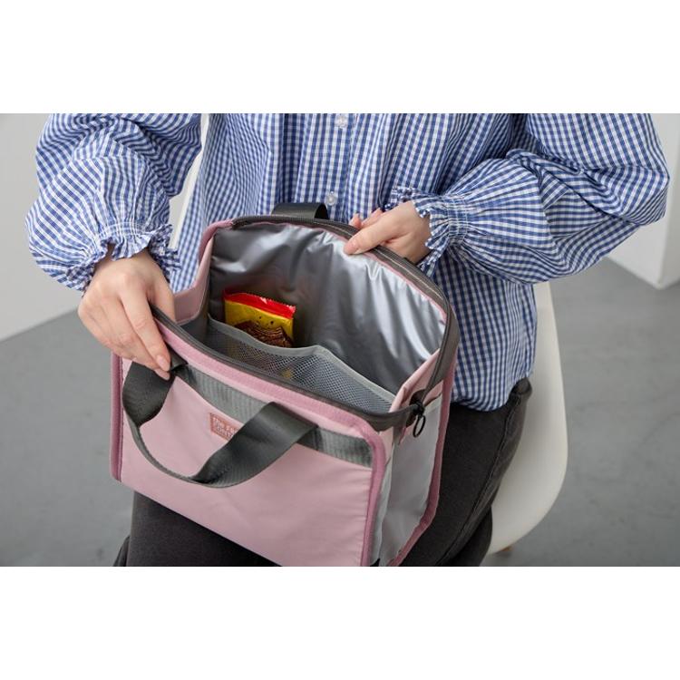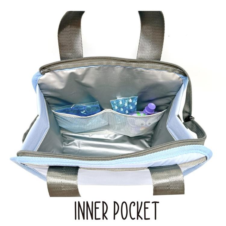 ・内側には、保冷剤を入れられる仕切り付きのメッシュポケットを配置。クールさをしっかりキープしながら安心して持ち運べます。