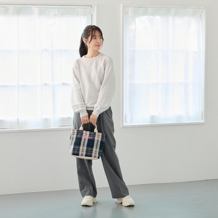 ・持ち手と底面には合皮を合わせて、カジュアルな中にもきちんと感をプラス。