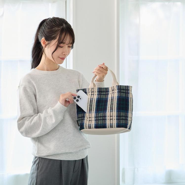 素材表地:ポリエステル/裏地:ポリエステル/持ち手:合成皮革/留め具:マグネットホック