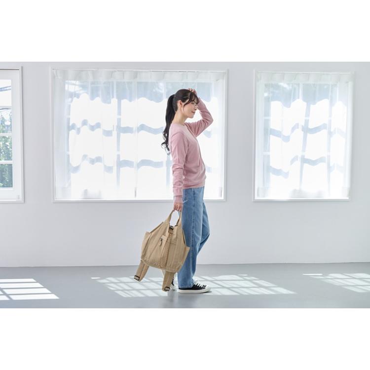 ・トートとして手持ちした時、ショルダーベルトの端が垂れないつくり。リュックにした時、外側のファスナーからも出し入れ可能。どちらの使い勝手も快適に!