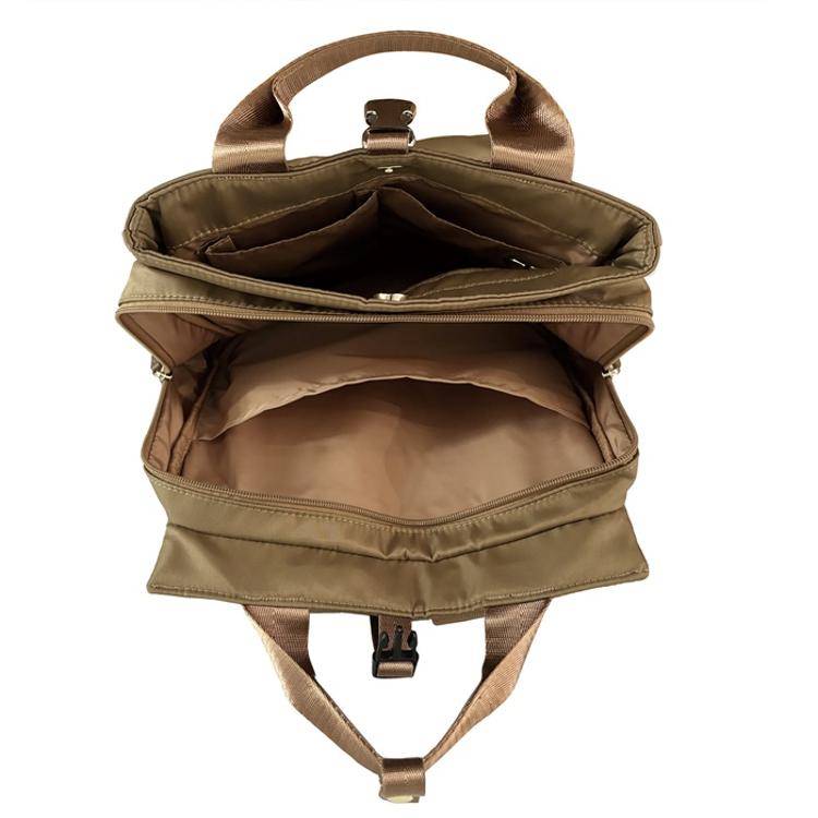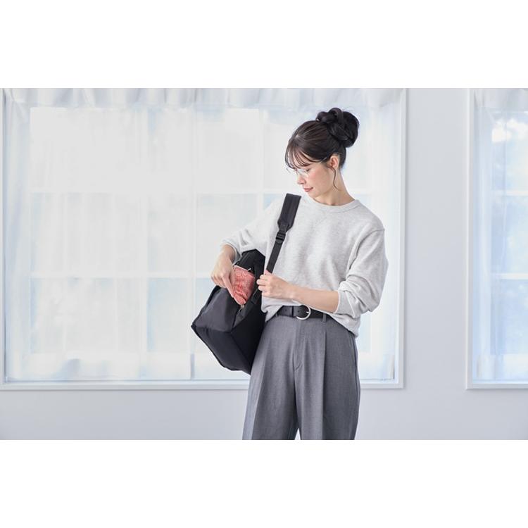 ・電車内で前に抱えた時に、内ポケットからの小物の出し入れが便利なつくり。上部は長さ調整可能なバッグルで留めてあるので、バックルを閉じたままでもモノの出し入れが可能です。