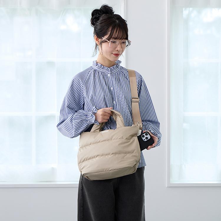 ・サブにもメインにも使える、頼れるサイズ感。ボトルやポーチなど、毎日の必需品がしっかり入ります。さらに、ストールや手袋など季節の小物をプラスしても余裕のある収納力。