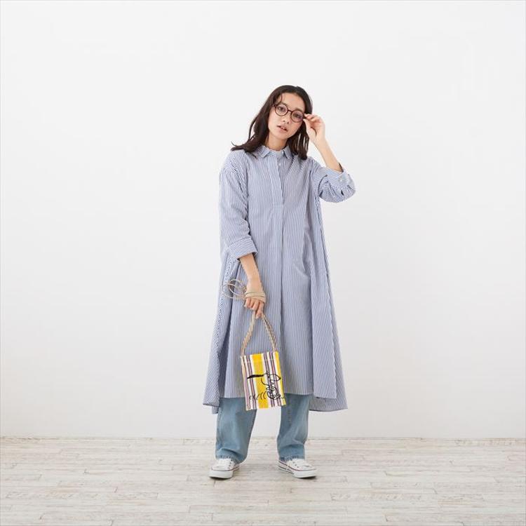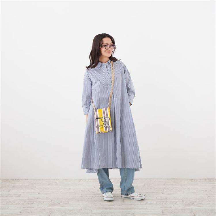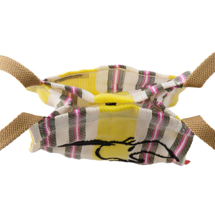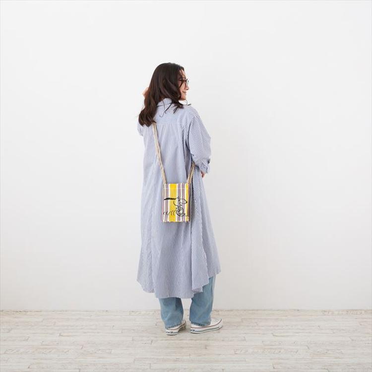 ・夏らしくキャッチーなストライプにスヌーピーを大胆に刺繍。