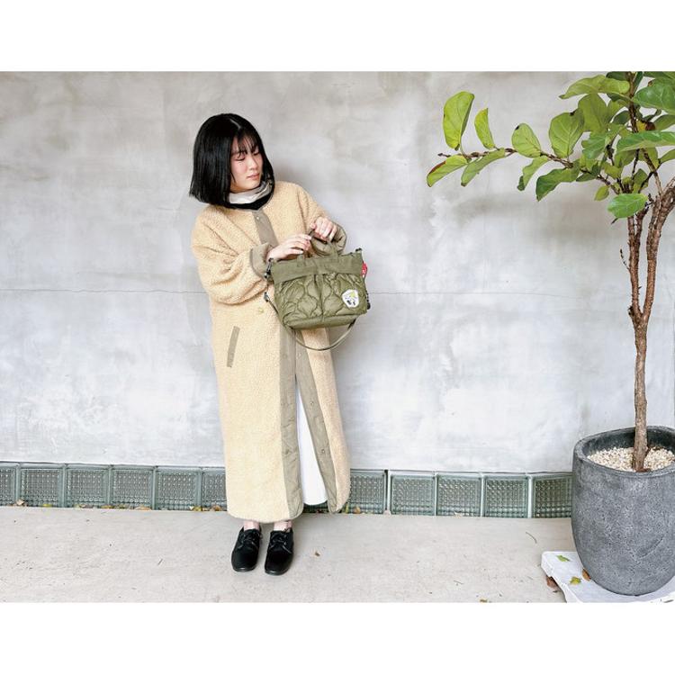 ・キルティング加工の大きめ前面ポケットは、プラホック開閉。