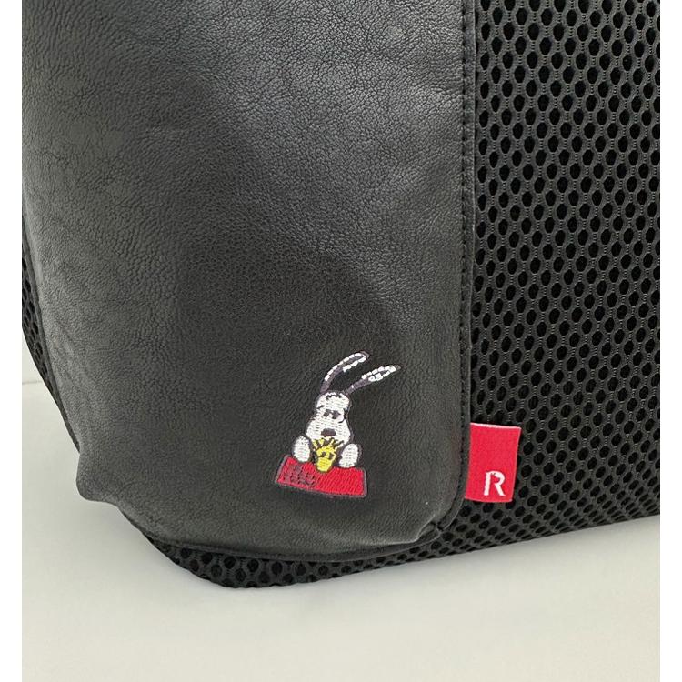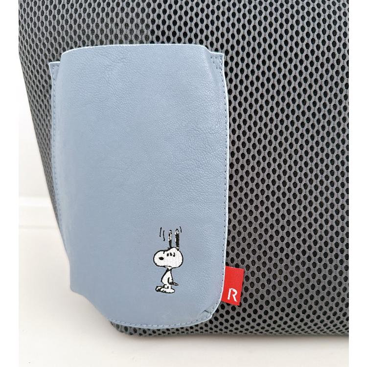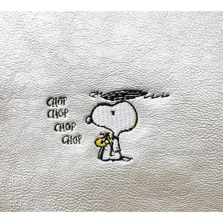 ・スヌーピーの刺繍を施した合皮のルーポケットがアクセント。
