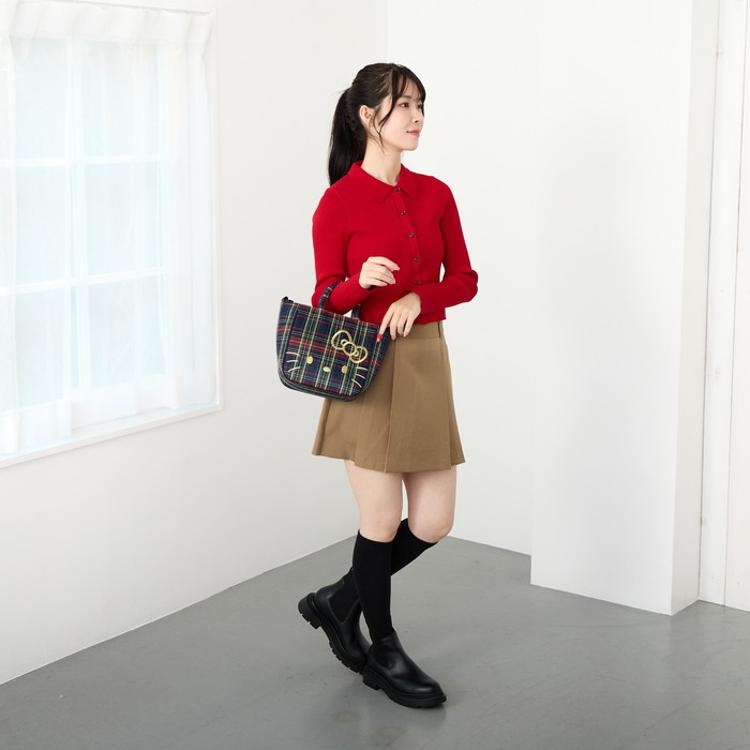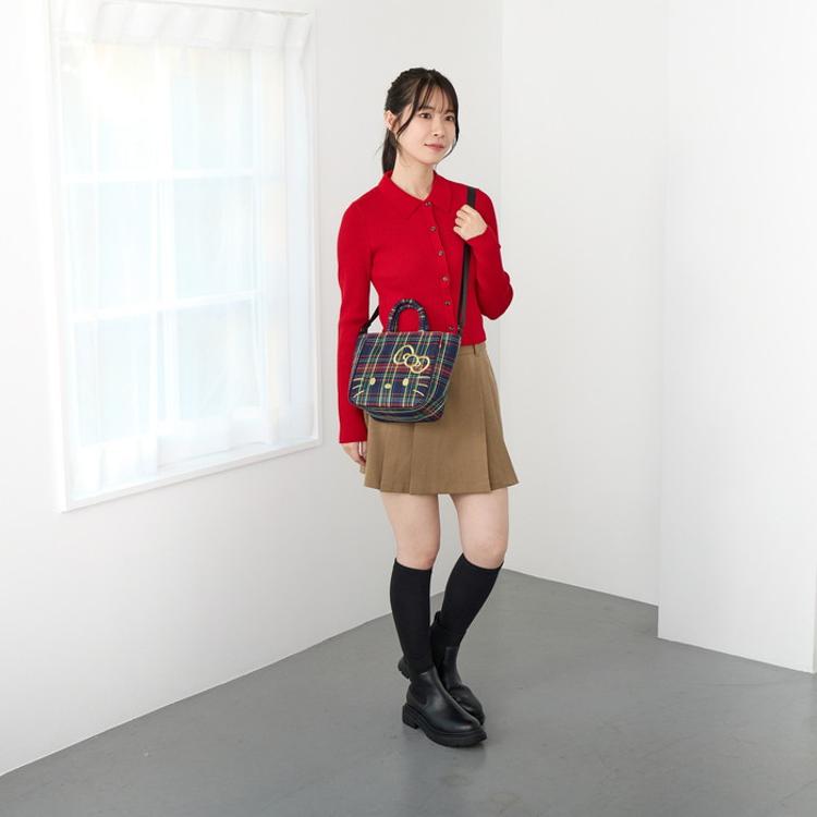 ・落ち着いた色合いが多くなる秋冬ファッション。明るいチェック柄がコーデのアクセントになり、持つだけで華やかな印象に。