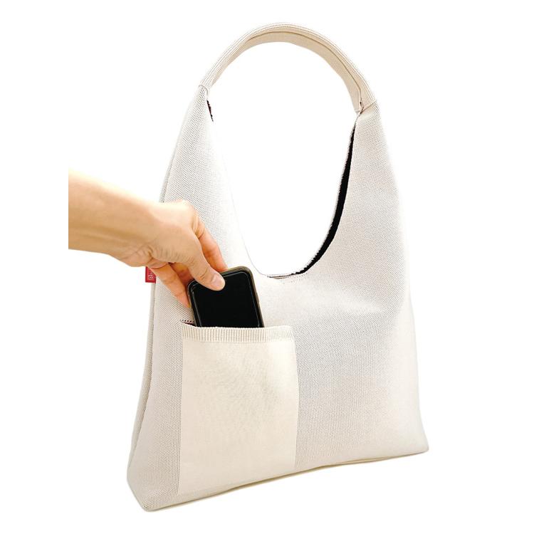 ・背面のルーポケットは、本体と一体で編まれていて、縫い目がないつくり。
