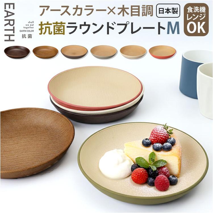 日本製 ラウンドプレート M 通販 食器 抗菌 プレート 木目調 食洗機対応 電子レンジ対応 お皿 楕円 おしゃれ シンプル スタッキング 丸皿 割れにくい ランチプレート ナチュラル 取り皿