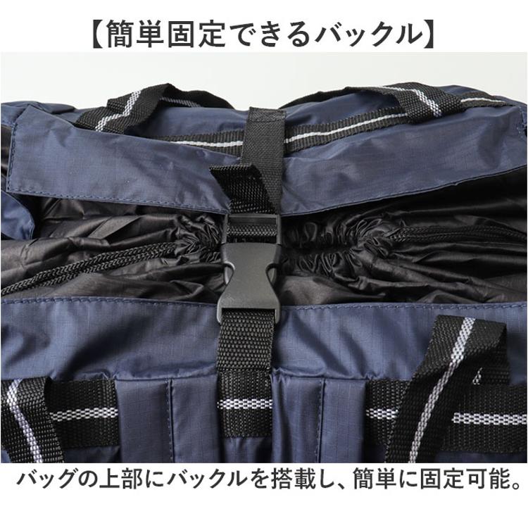 ・バッグの上部にバックルを搭載し、簡単に固定可能。