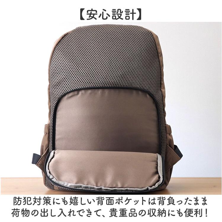 ・防犯対策にも嬉しい背面ポケットは背負ったまま荷物の出し入れできて、貴重品の収納にも便利!