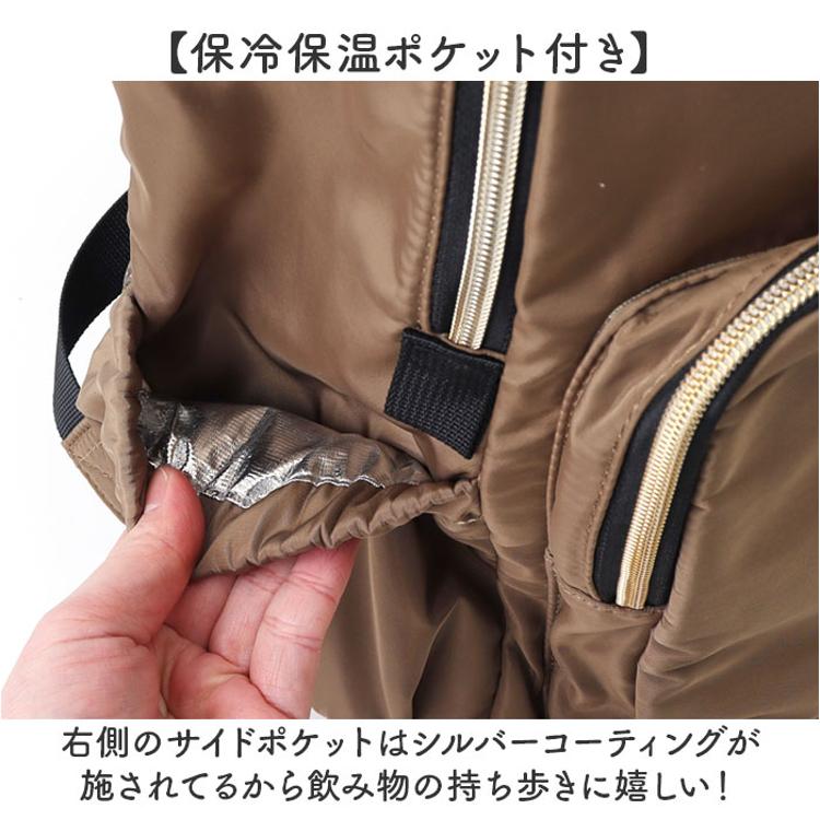 ・右側のサイドポケットはシルバーコーティングが施されてるから飲み物の持ち歩きに嬉しい!