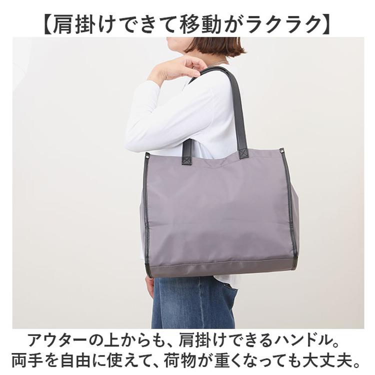 ・アウターの上からも、肩掛けできるハンドル。両手を自由に使えて、荷物が重くなっても大丈夫。