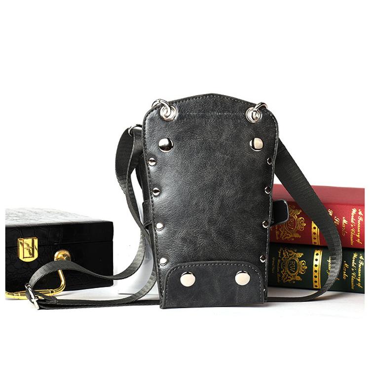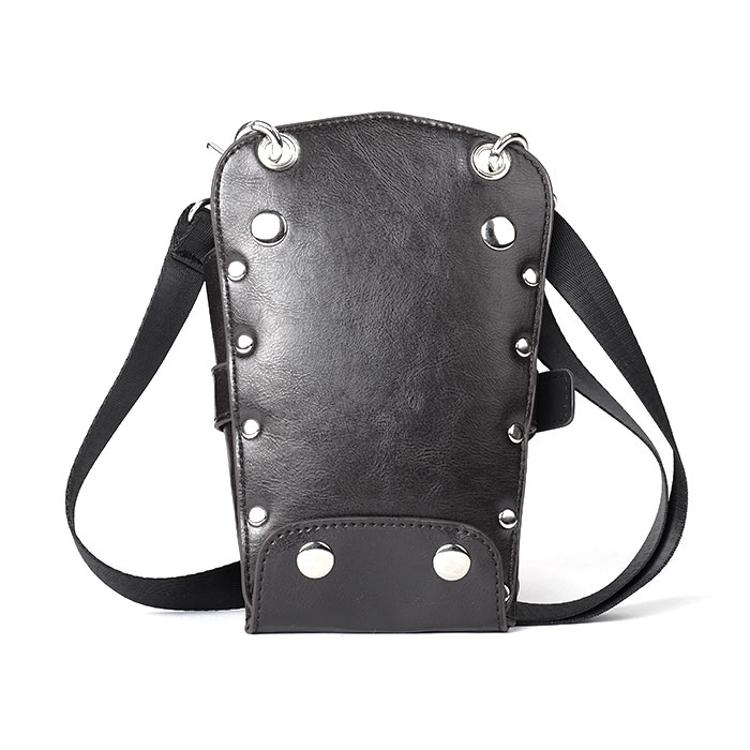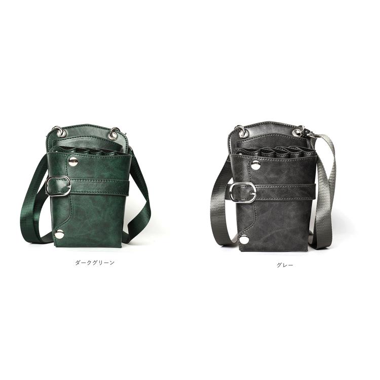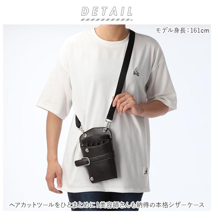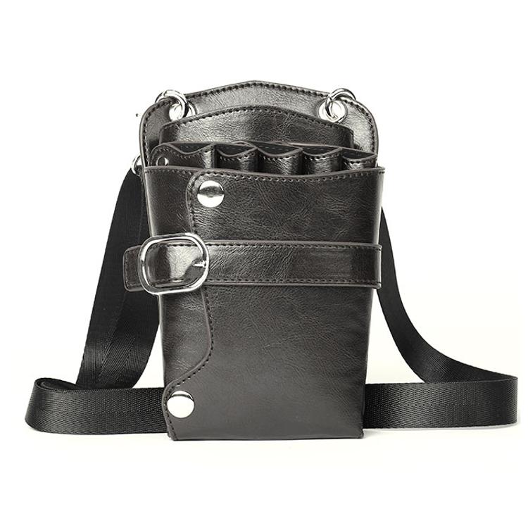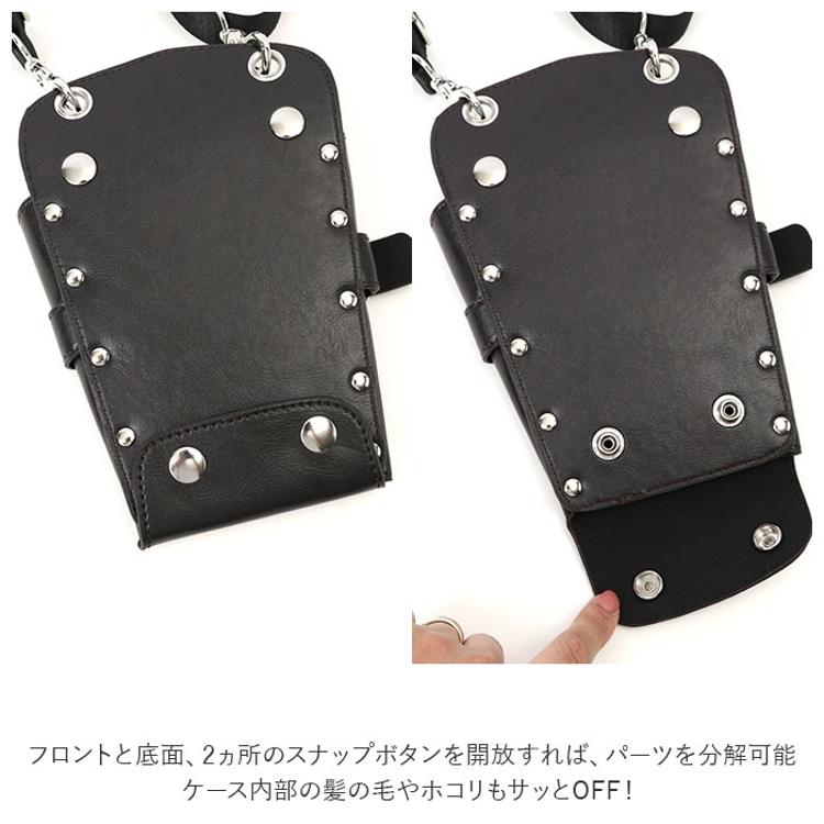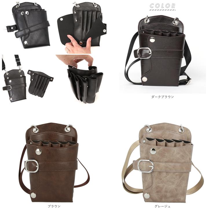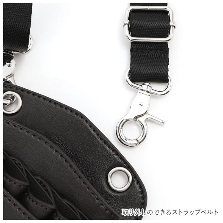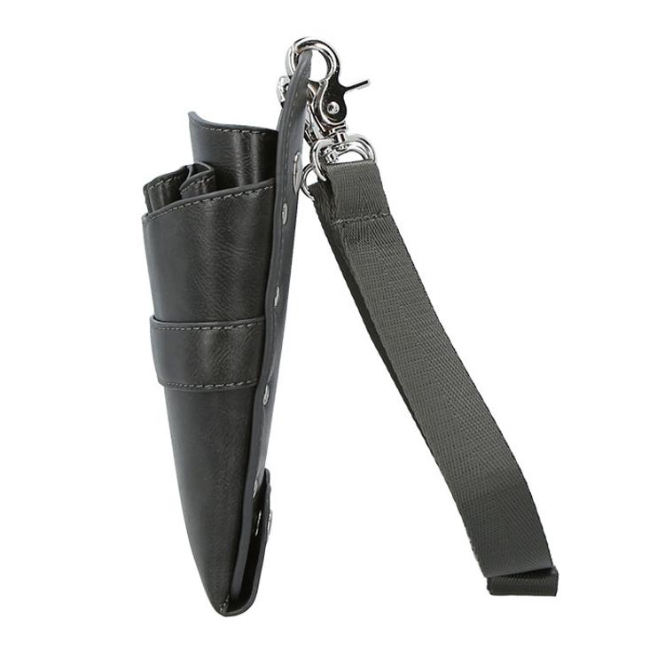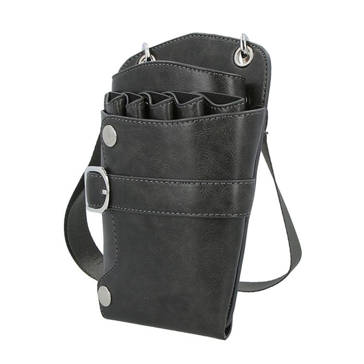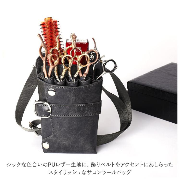 ・シックな色合いのPUレザー生地に、飾りベルトをアクセントにあしらったスタイリッシュなサロンツールバッグ。