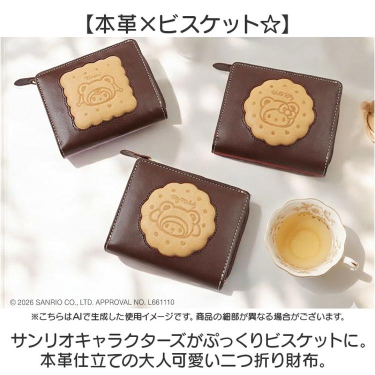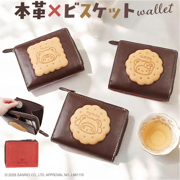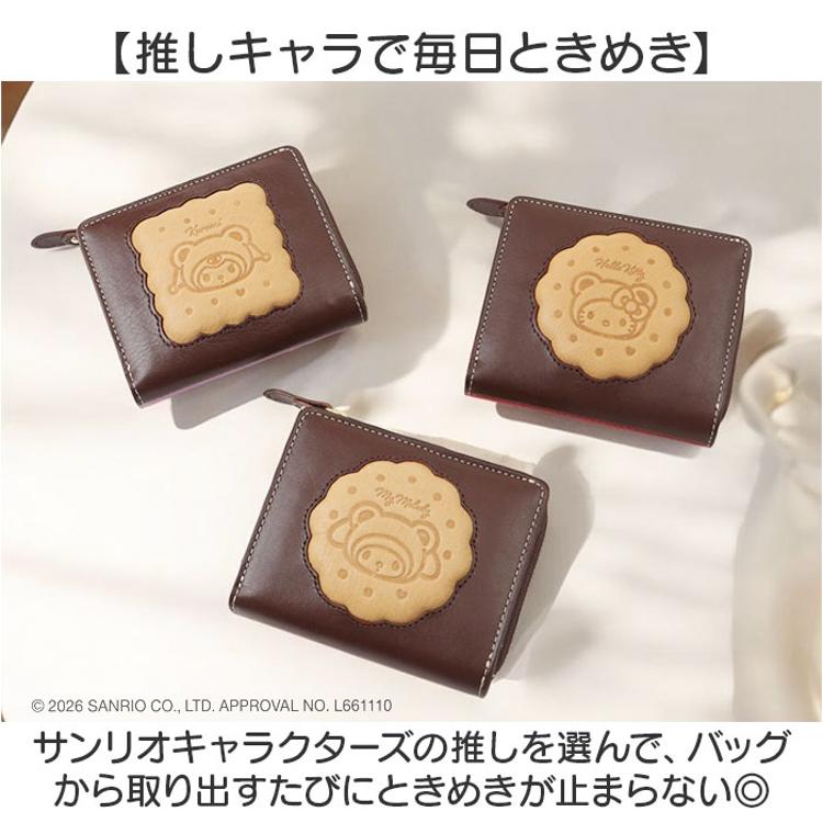 ・サンリオキャラクターズがぷっくりビスケットに。本革仕立ての大人可愛い二つ折り財布。
