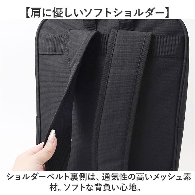 ・ショルダーベルト裏側は、通気性の高いメッシュ素材。ソフトな背負い心地。