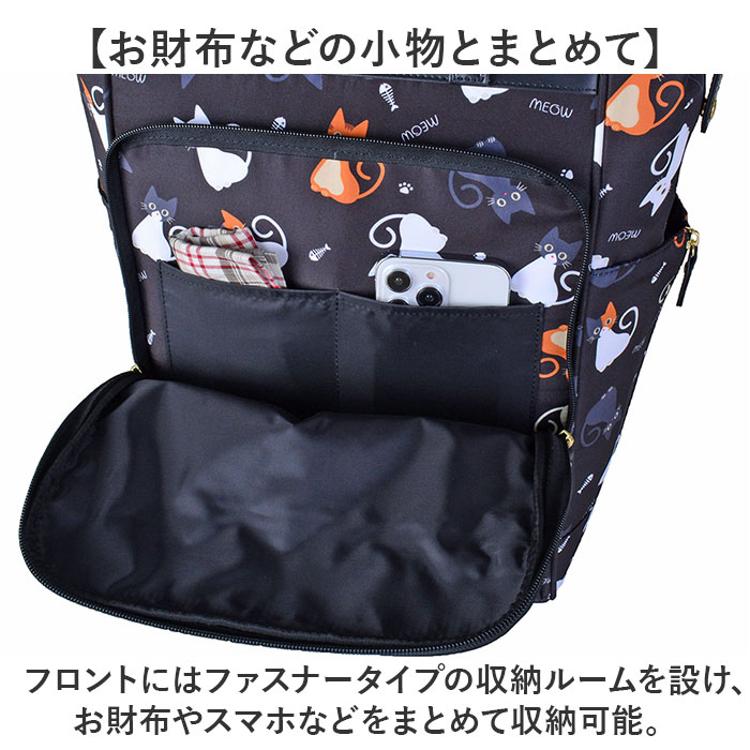 ・フロントにはファスナータイプの収納ルームを設け、お財布やスマホなどをまとめて収納可能。