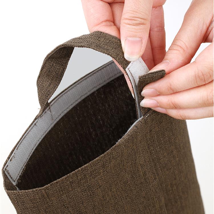 ・面ファスナー式の吊りヒモは長さを調節して、サッと壁掛け。洗面等の限られた空間も有効活用◎
