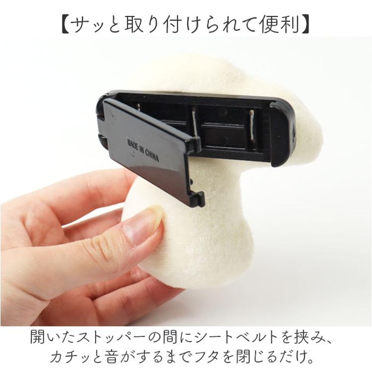・シートベルトの締め付けを和らげる◎キャラクターモチーフの「シートベルトストッパー」。