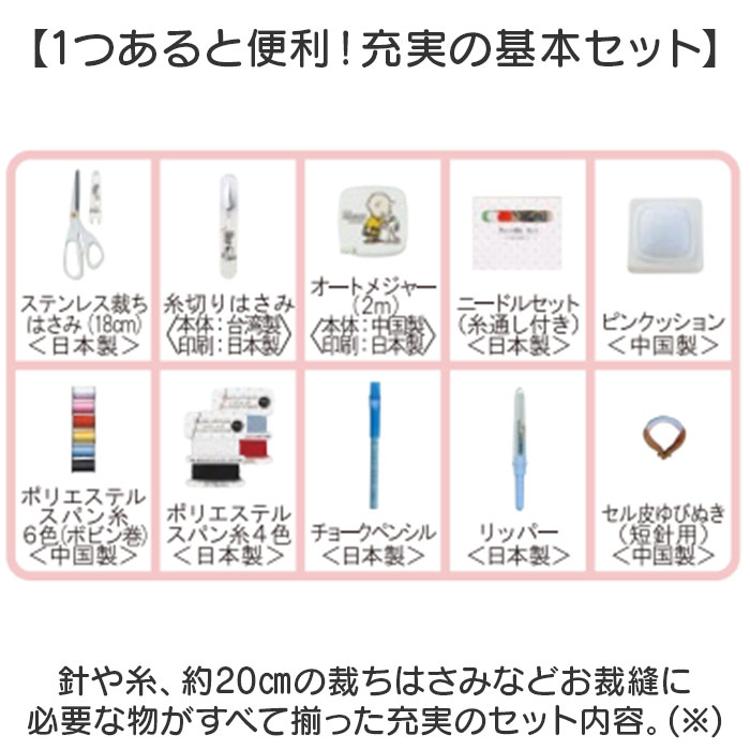 ・針や糸、約20cmの裁ちはさみなどお裁縫に必要な物がすべて揃った充実のセット内容。