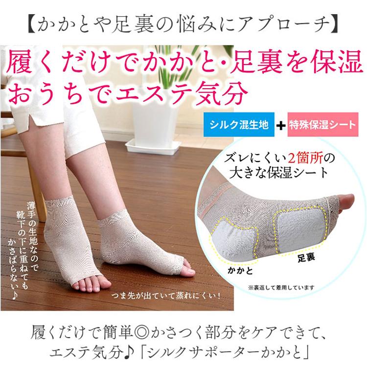 ・シルク混生地&特許保湿シートを配置。かかとと足裏部分の乾燥を防ぎ、通気性・吸湿性も◎