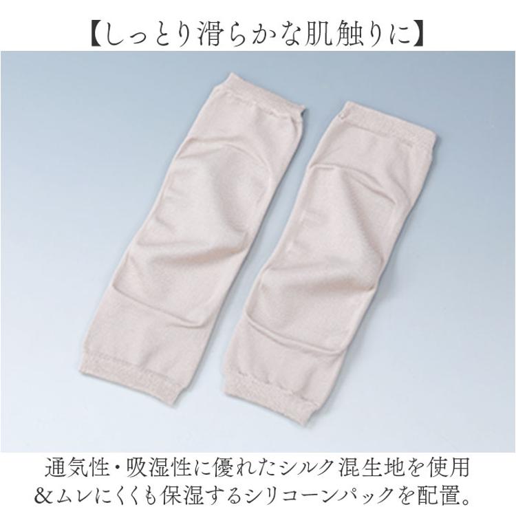 ・通気性・吸湿性に優れたシルク混生地を使用&ムレにくくも保湿するシリコーンパックを配置。