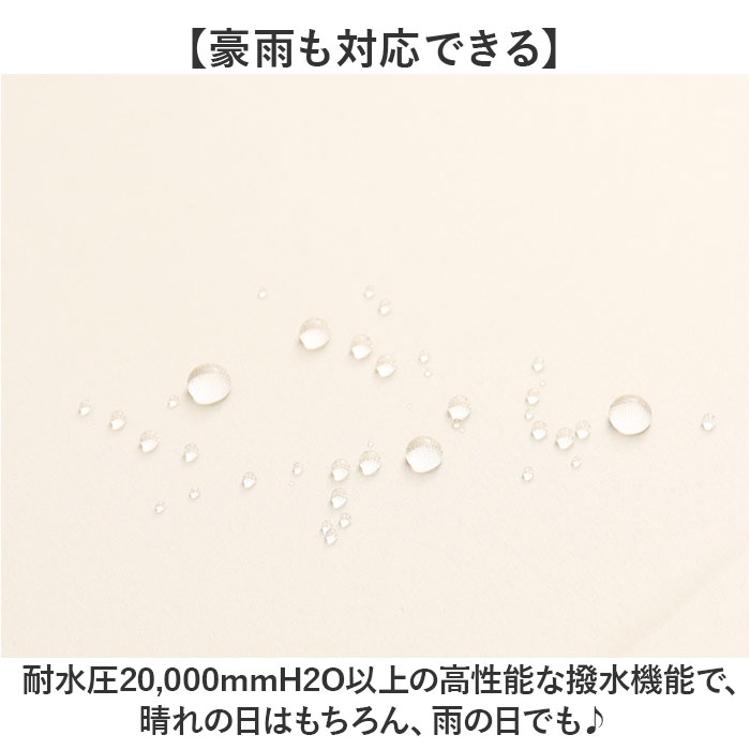 ・耐水圧20,000mmH2O以上の高性能な撥水機能で、晴れの日はもちろん、雨の日でも♪