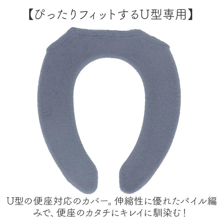 ・U型の便座対応のカバー。伸縮性に優れたパイル編みで、便座のカタチにキレイに馴染む!