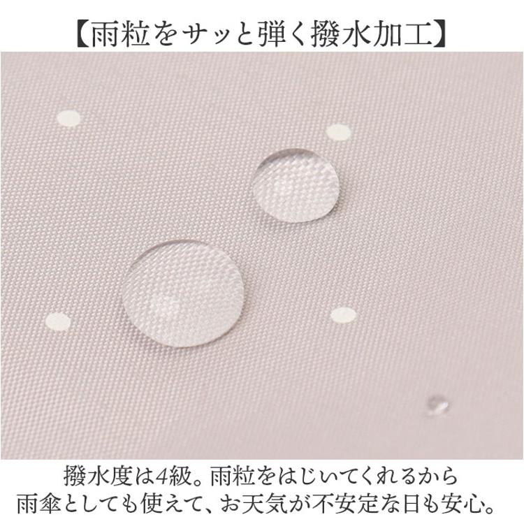 ・撥水度は4級。雨粒をはじいてくれるから雨傘としても使えて、お天気が不安定な日も安心。