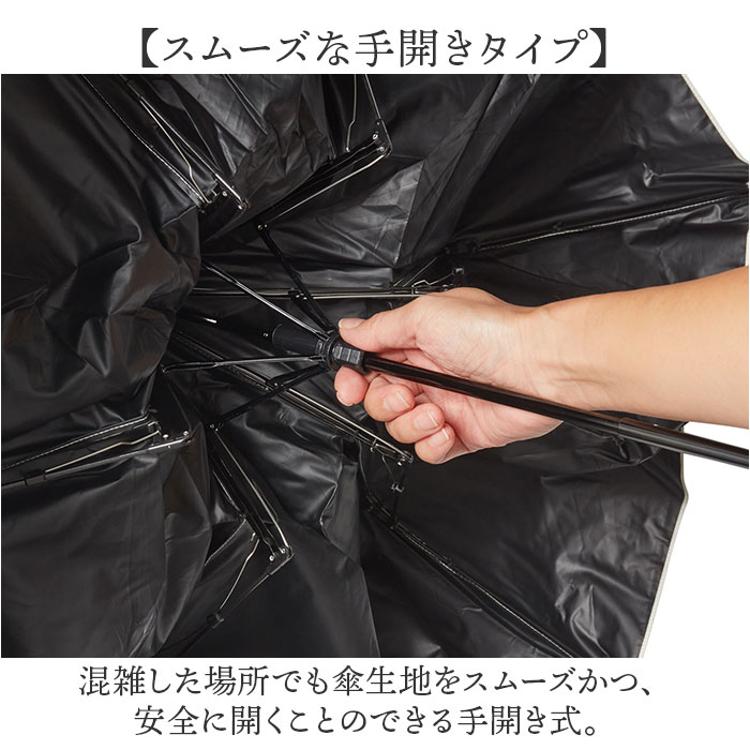 ・混雑した場所でも傘生地をスムーズかつ、安全に開くことのできる手開き式。