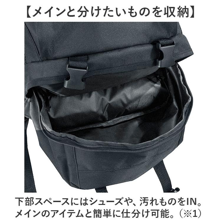 ・下部スペースにはシューズや、汚れものをIN。メインのアイテムと簡単に仕分け可能。