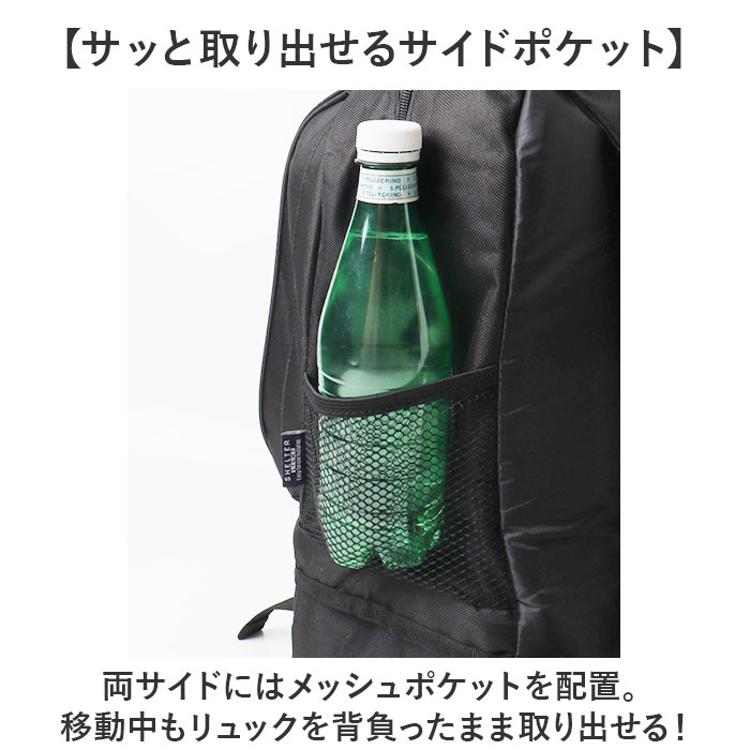 ・両サイドにはメッシュポケットを配置。移動中もリュックを背負ったまま取り出せる!