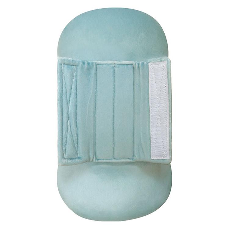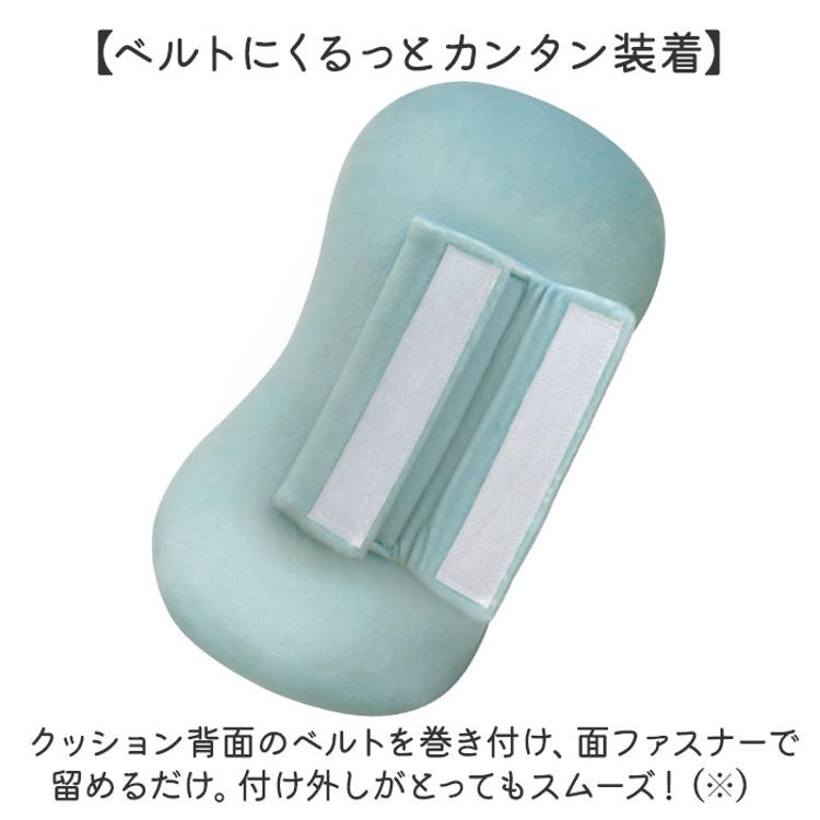 ・クッション背面のベルトを巻き付け、面ファスナーで留めるだけ。付け外しがとってもスムーズ!